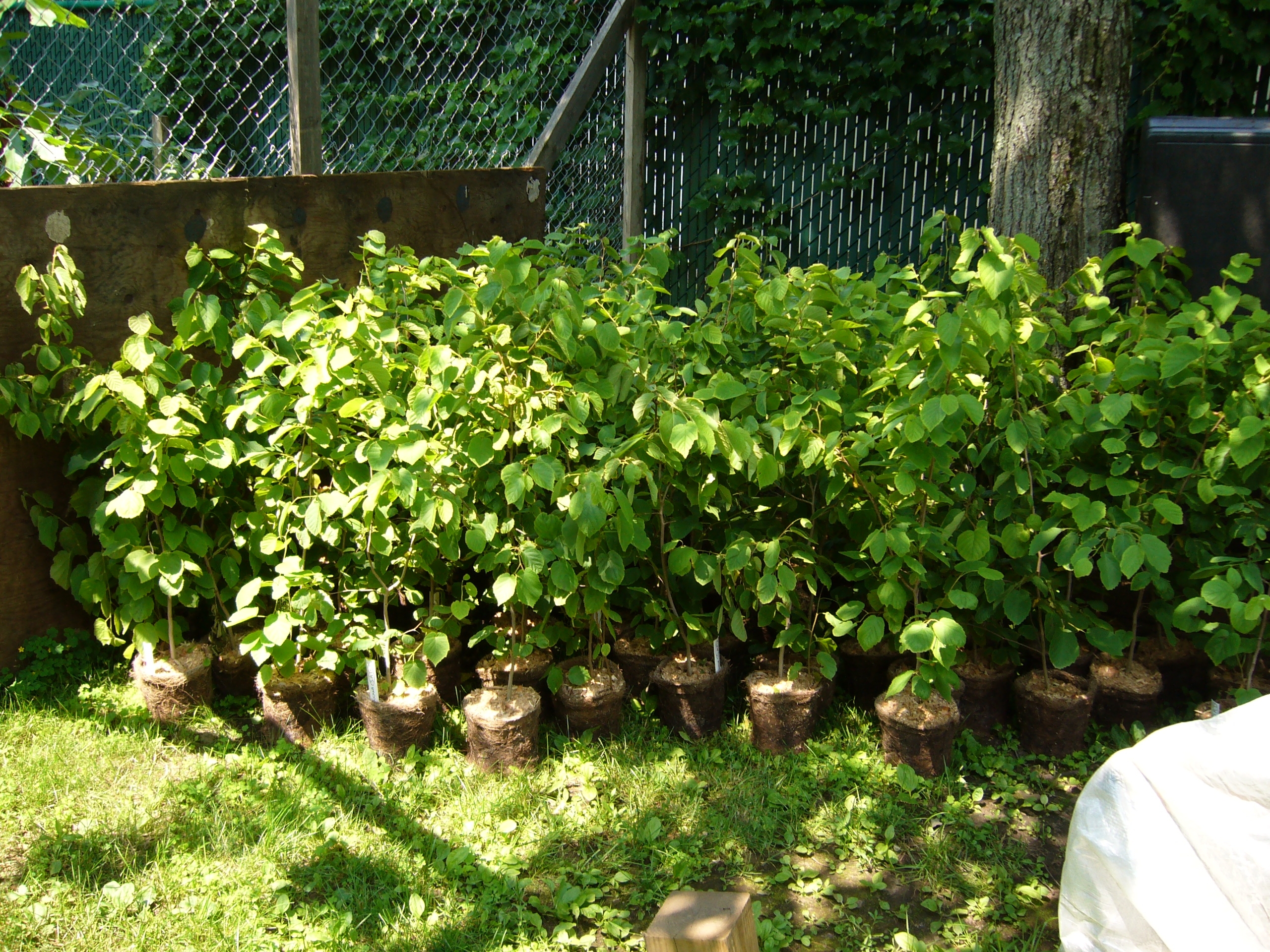 plants d'une des productions de noisetiers greffes ( x Drummonville) et( x Golf )
